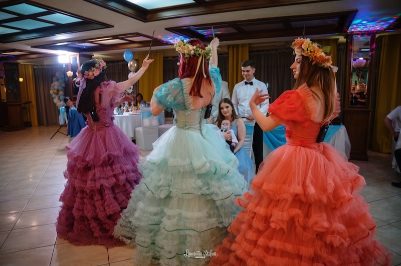 Pentru a adăuga o notă unică de poveste și magie, echipa noastră oferă spectacole cu ursitoare magice, menite să încânte invitații și să creeze o amintire de neuitat. Ursitoarele sunt personaje mitice, simboluri ale destinului, care aduc binecuvântări și urări pentru viitorul luminos al copilului.